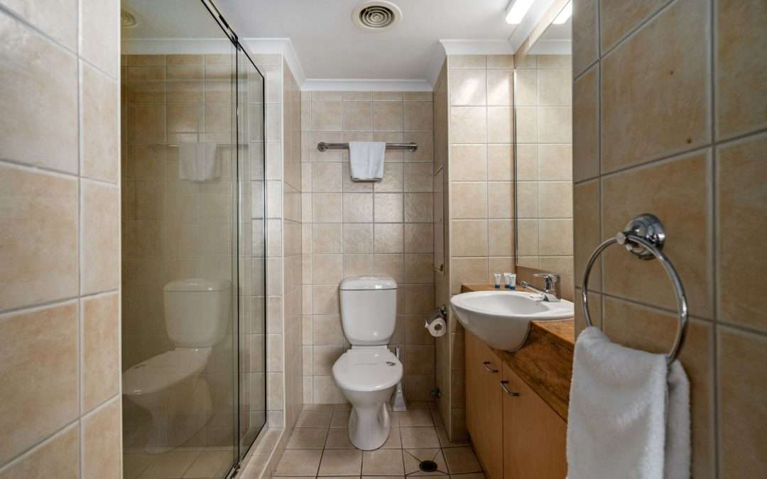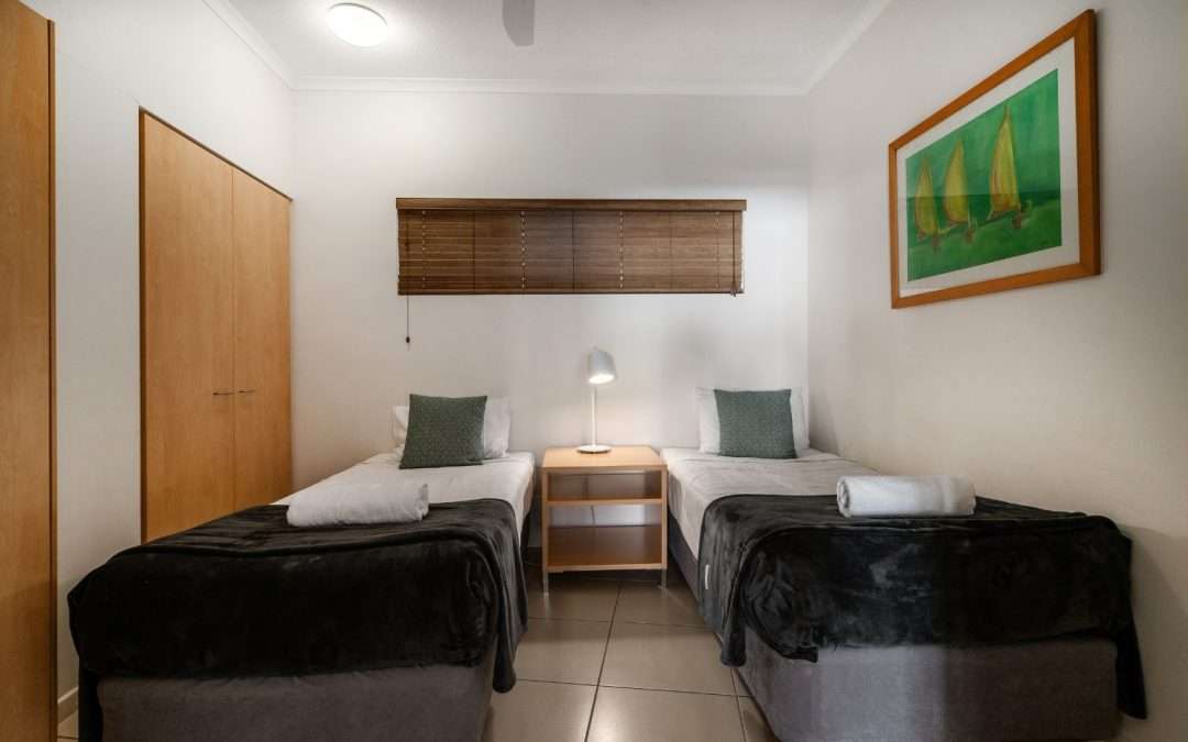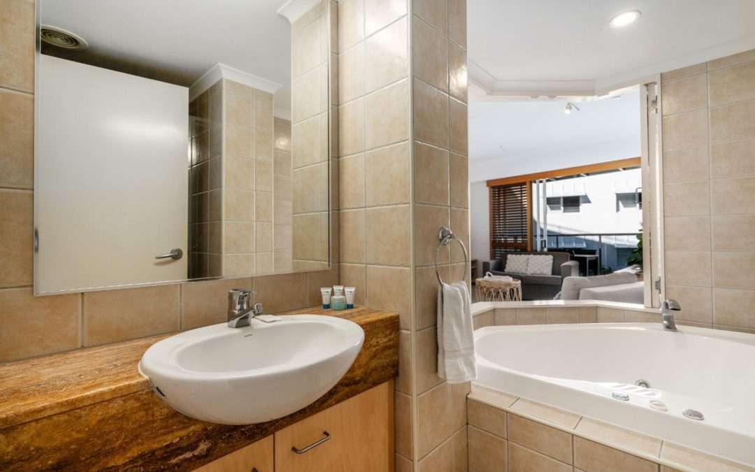 Designed to accommodate up to five people, this comfortable 2 Bedroom Apartment includes a master bedroom with ensuite and queen bed plus a second bathroom with spa, and bedroom featuring two single beds.