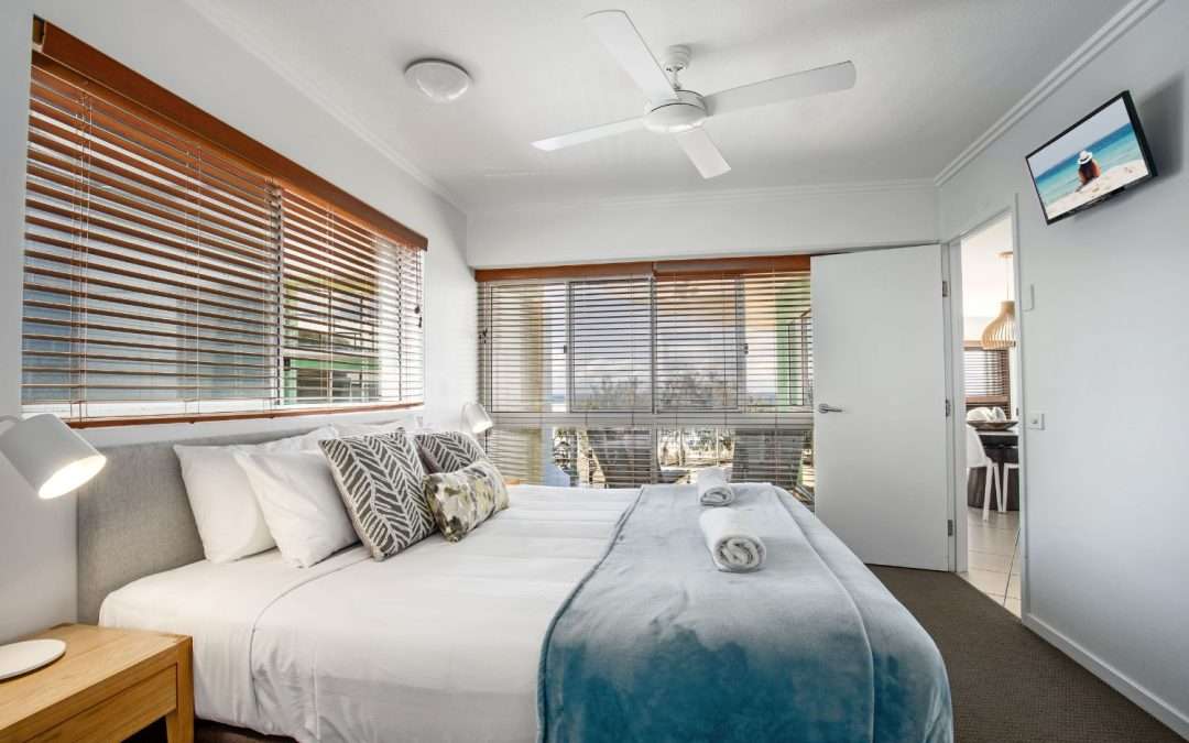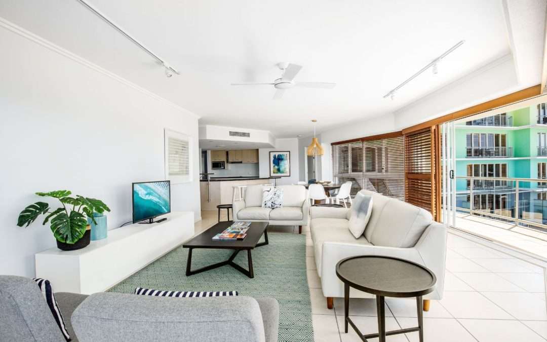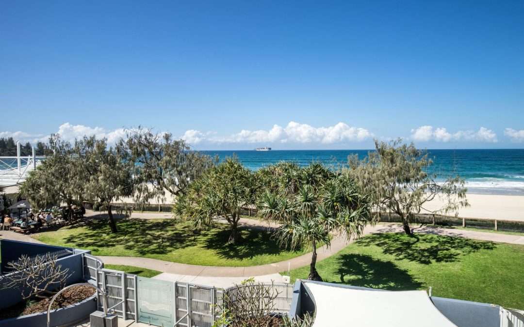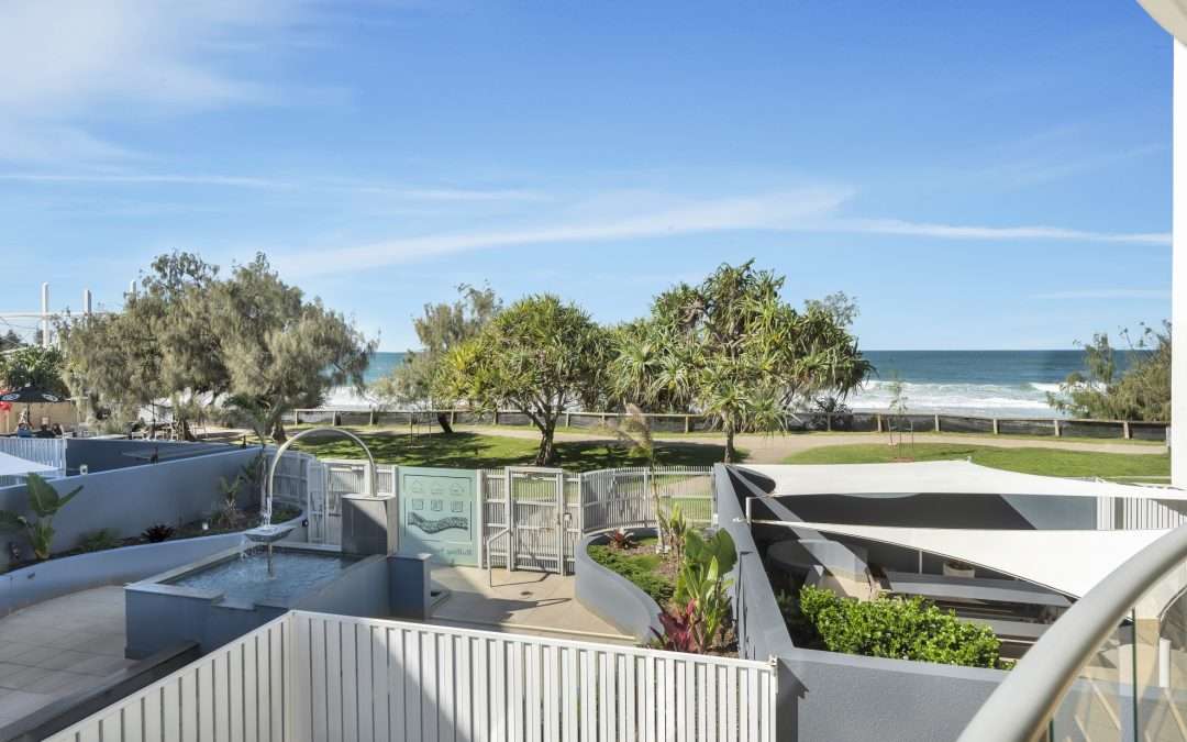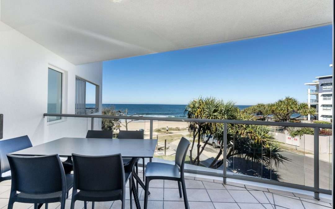 Experience the ultimate in holiday bliss with panoramic views over Kings Beach from your 3 Bedroom Balcony Apartment, featuring a spacious open-plan design and fully equipped home-away-from-home vibe.