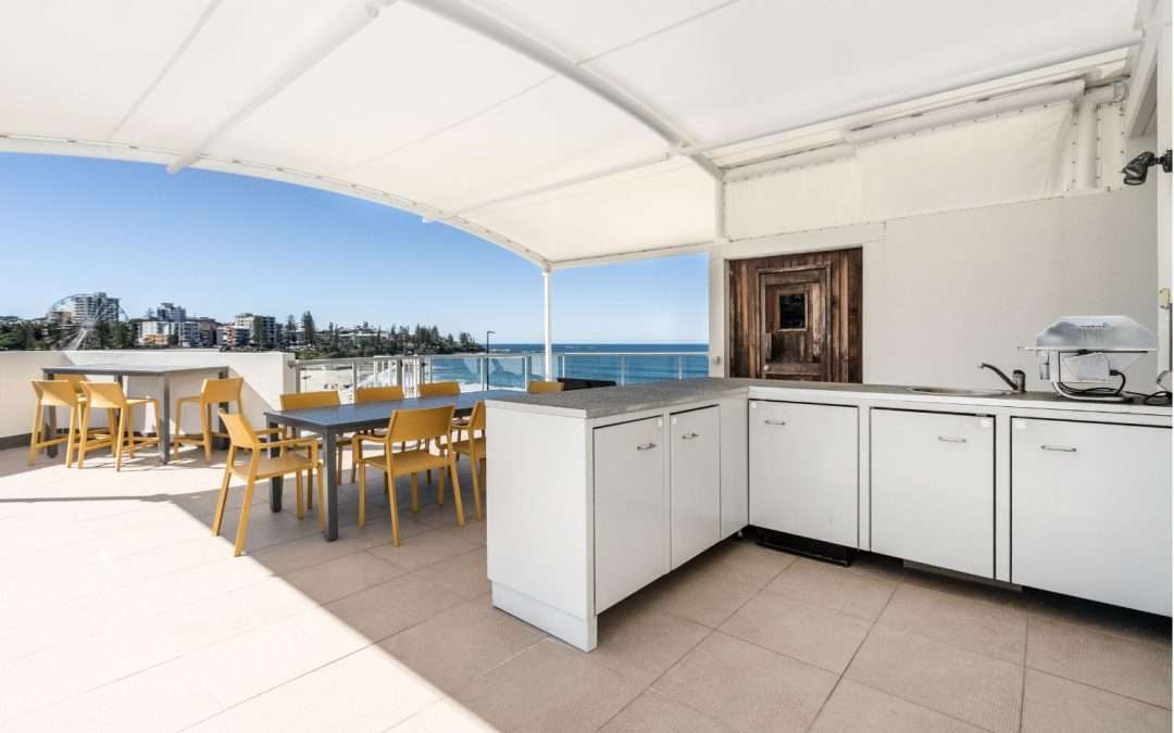 Featuring a private BBQ and kitchen area, outdoor dining furniture and reclining sun loungers, your private and spacious rooftop haven is the perfect place to enjoy an outdoor meal, catch some rays or breathe in the fresh sea air. This apartment also features your own private balcony with stunning ocean views overlooking Kings Beach.